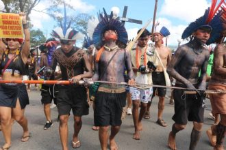 Milhares de representantes de diversos povos protestam na Esplanada dos Ministérios, acusando parlamentares de ameaçarem…